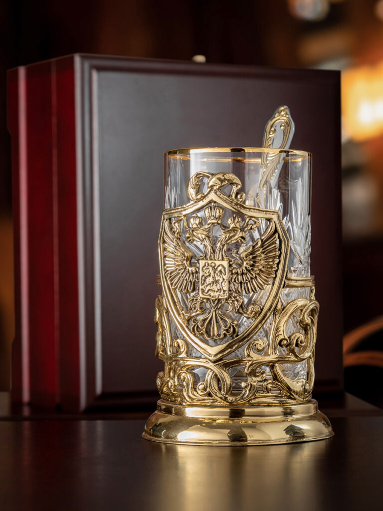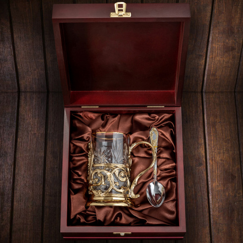 В наборе 1 подстаканник, чайная ложка, деревянная шкатулка