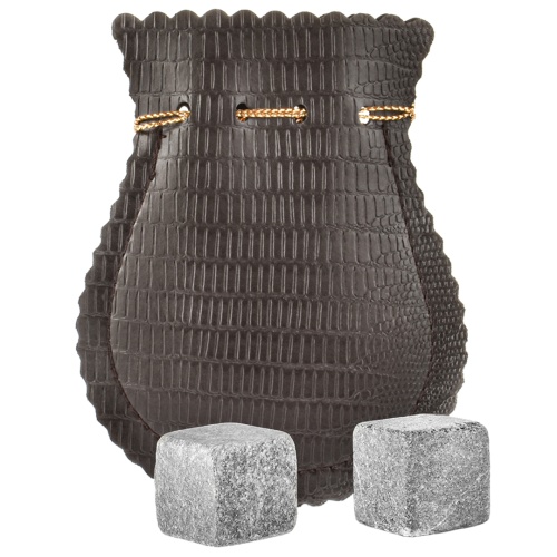 В наборе 4 бокала для виски квадро, камни, мешки в черной подарочной коробке