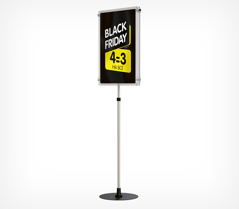 Рекламная стойка с пластиковой клик-рамой PCF-STAND и защелкивающимся профилем шириной 25 мм.