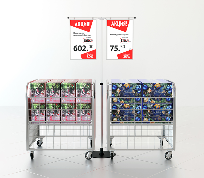 Оптимальный выбор для размещения рекламной информации, информации о товарах, акциях, услугах, постеров непосредственно рядом с выкладкой продукта.
