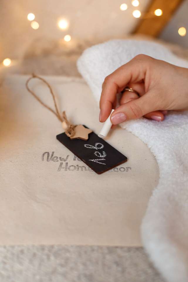2. Нанесение бренда/логотипа на деревянный шильдик на колпаке гнома.