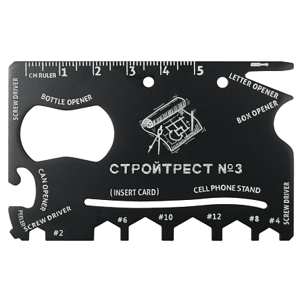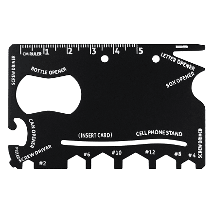 Компактный многофункциональный инструмент, который легко помещается в бумажник или крепится к ключам как брелок. Идеален для мелкого ремонта, путешествий, велопрогулок, активного отдыха и просто как полезный подарок на любой случай.