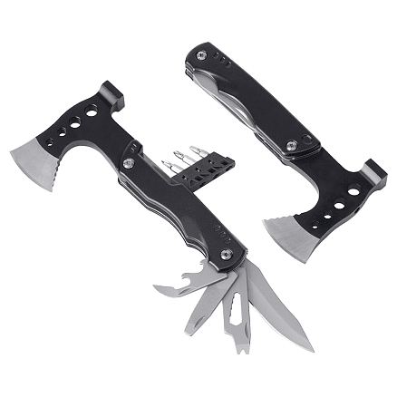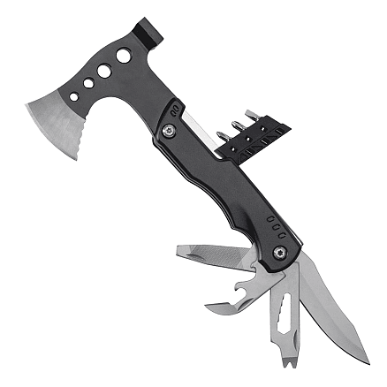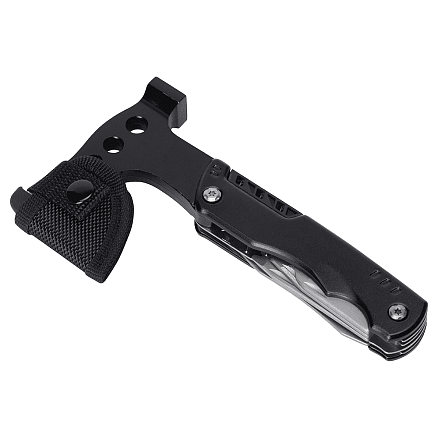 Практичный и надежный инструмент для активного отдыха, дачи или в качестве подарка. Изготовлен из нержавеющей стали марки 420, мультитул обладает весом 404 г — это обеспечивает удобство при использовании топора и молотка, добавляя уверенность в каждом движении.
