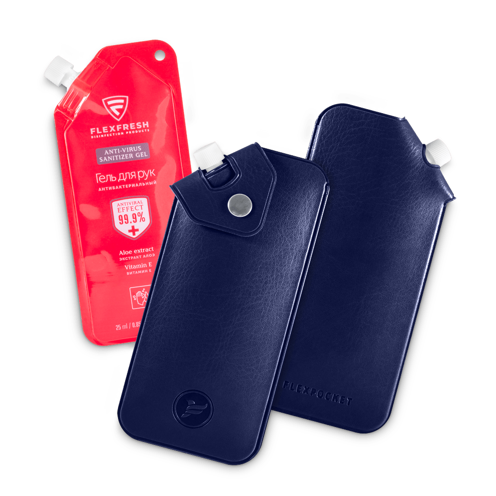 Антисептик-картридж 25мл в чехле из экокожи, цвет темно-синий classic