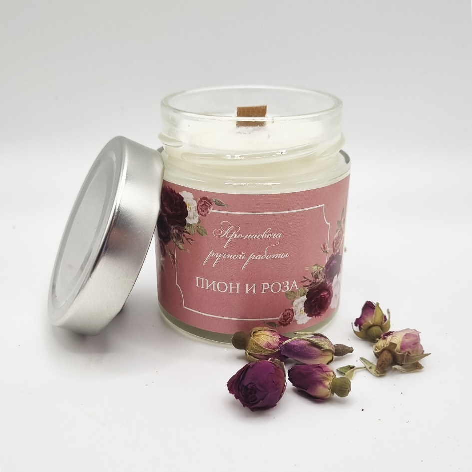 Аромасвеча PION AND ROSE в банке 200 мл. натуральный воск + парфюмированная отдушка