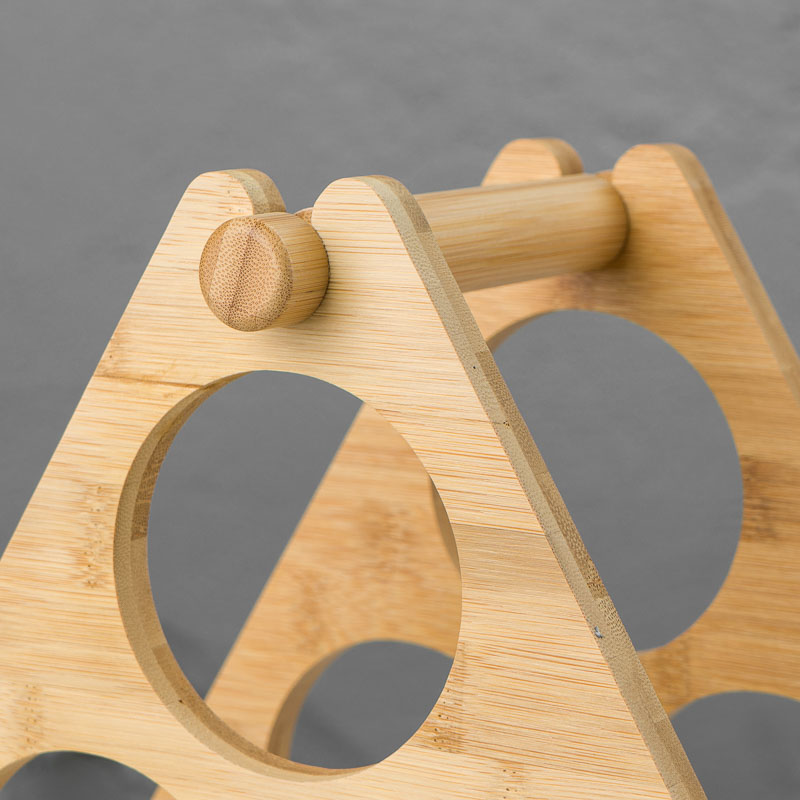 Подставка из светлого бамбука очень устойчива и вмещает в себя до 6 бутылок. При необходимости изделие можно сложить, т.к. она разборная. Подставка состоит из натурального бамбукового волокна.