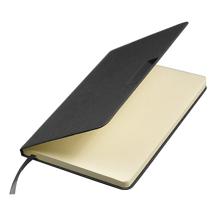 Блокнот А5 Hobard, в твердой тканевой обложке c резинкой в линейку, черный