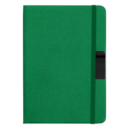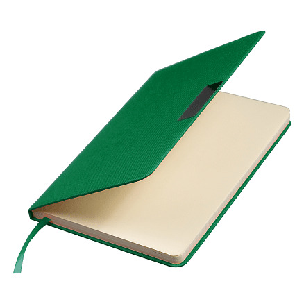 Блокнот А5 Hobard, в твердой тканевой обложке c резинкой в линейку, зеленый