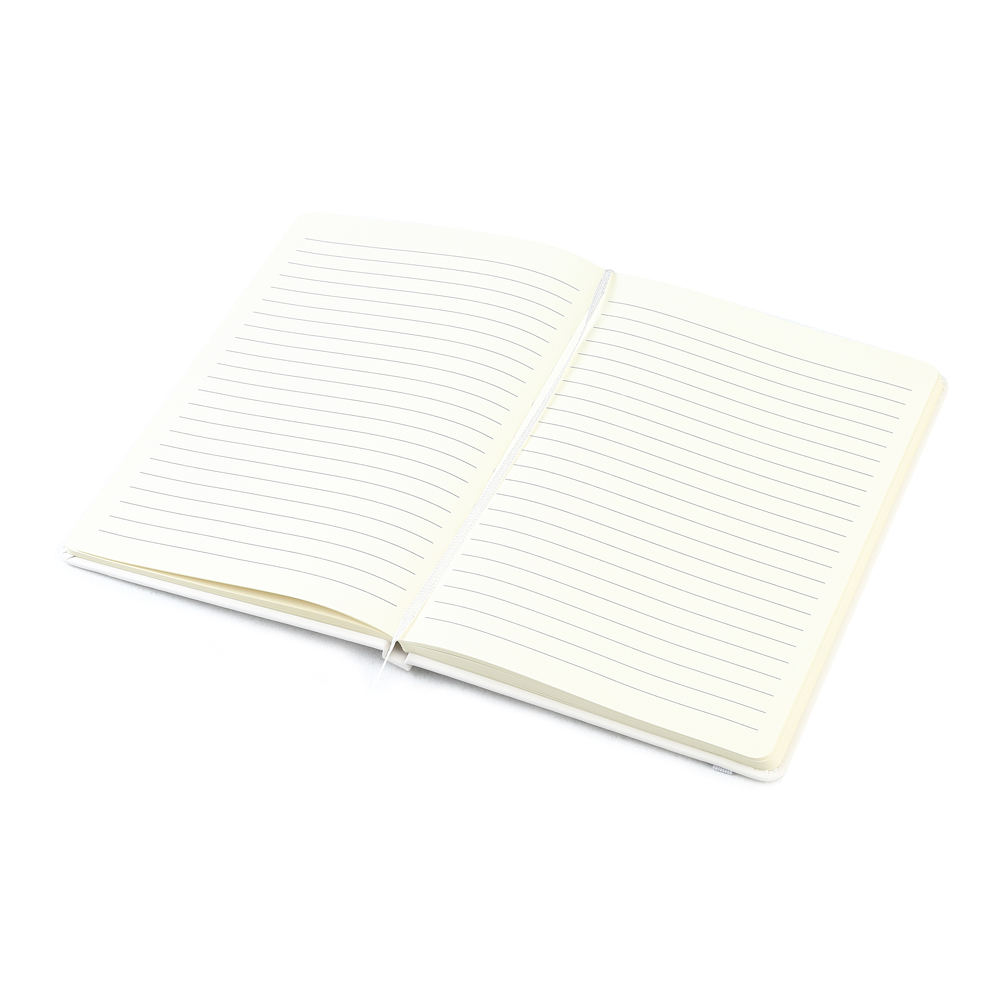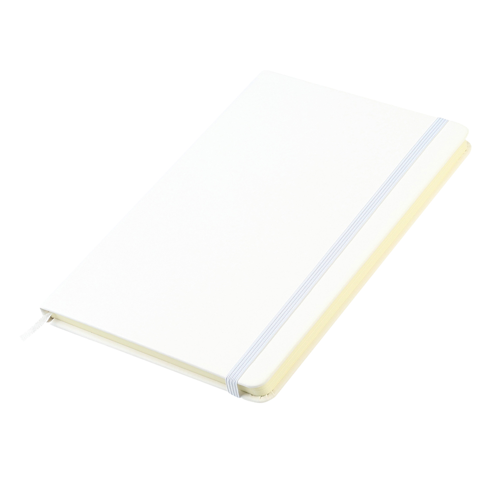 Блокнот формата А5 с твердым покрытием из PU-материала с имитацией рисунка кожи, с эластичной застежкой для закрытия и текстильной закладкой в цвет блокнота, 192 страницы / 96 листов, плотность 70г/м, страницы с черными линиями.