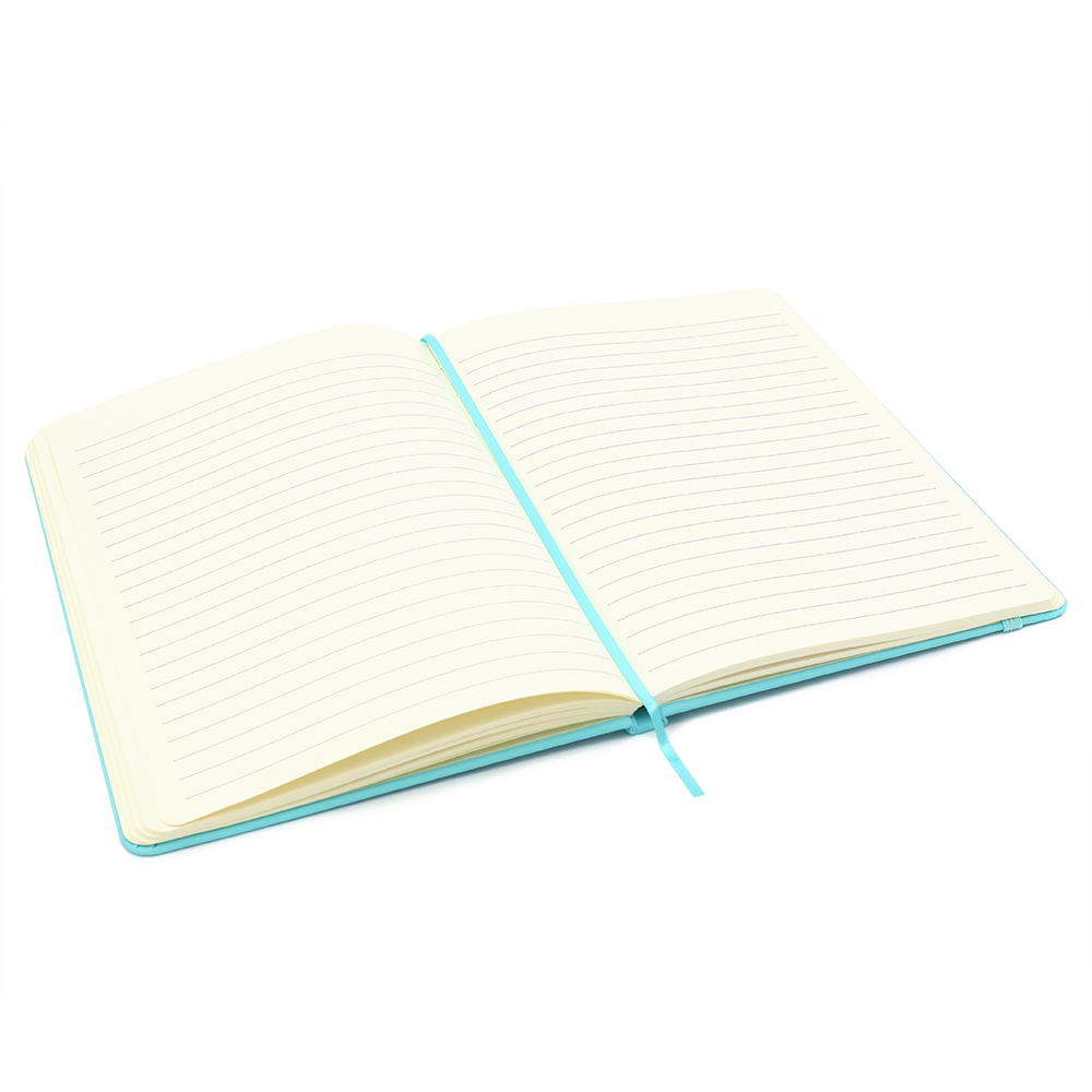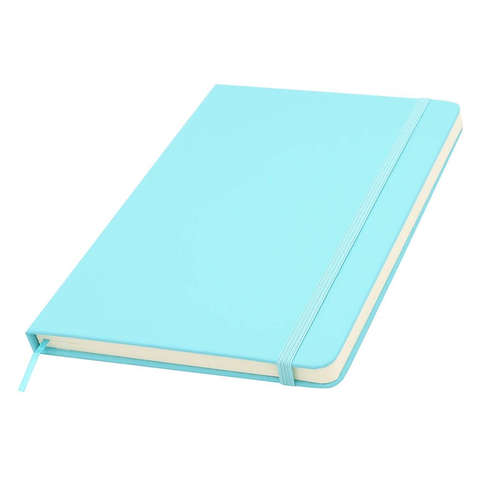 Блокнот формата А5 с твердым покрытием из PU-материала с имитацией рисунка кожи, с эластичной застежкой для закрытия и текстильной закладкой в цвет блокнота, 192 страницы / 96 листов, плотность 70г/м, страницы с черными линиями. Цвет по PANTONE® (максимально приближен): 325 С