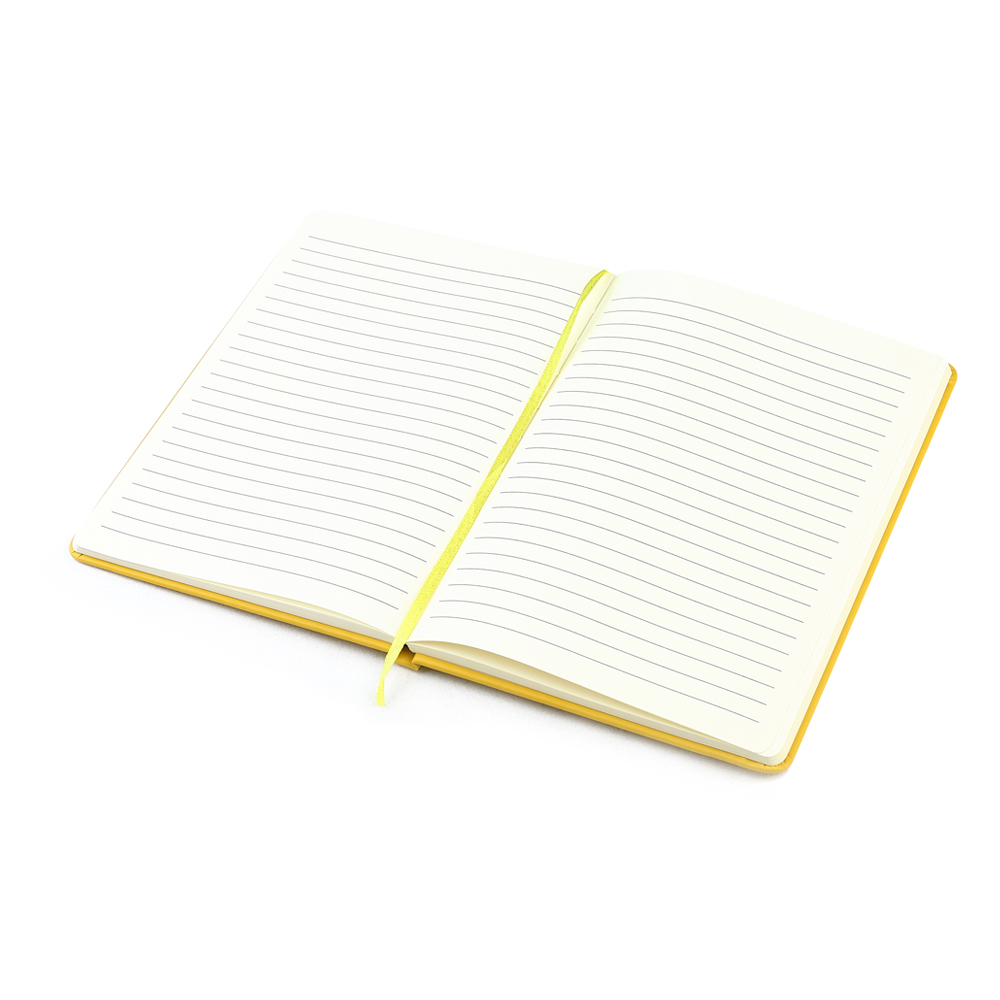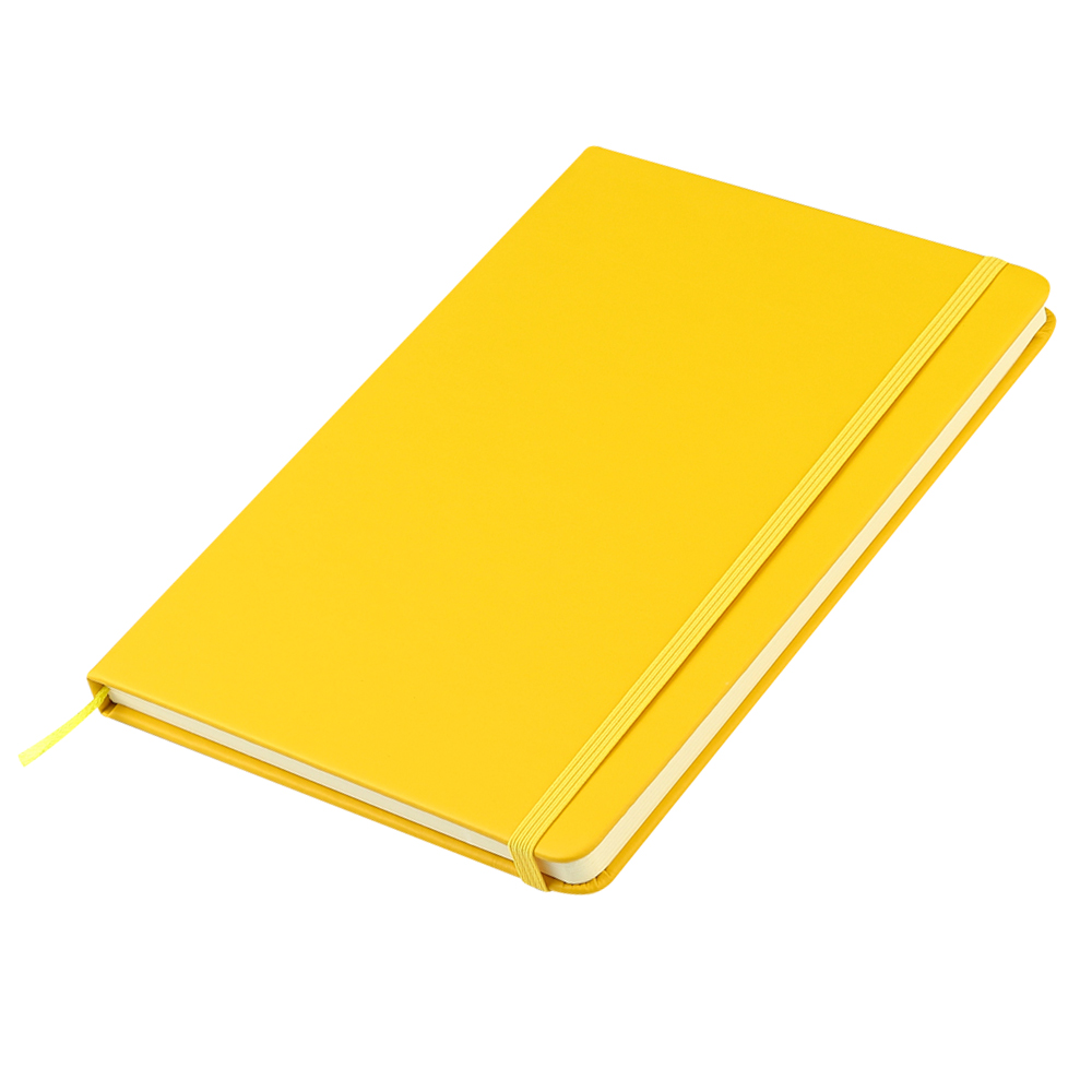 Блокнот формата А5 с твердым покрытием из PU-материала с имитацией рисунка кожи, с эластичной застежкой для закрытия и текстильной закладкой в цвет блокнота, 192 страницы / 96 листов, плотность 70г/м, страницы с черными линиями. Цвет по PANTONE® (максимально приближен): 109C.