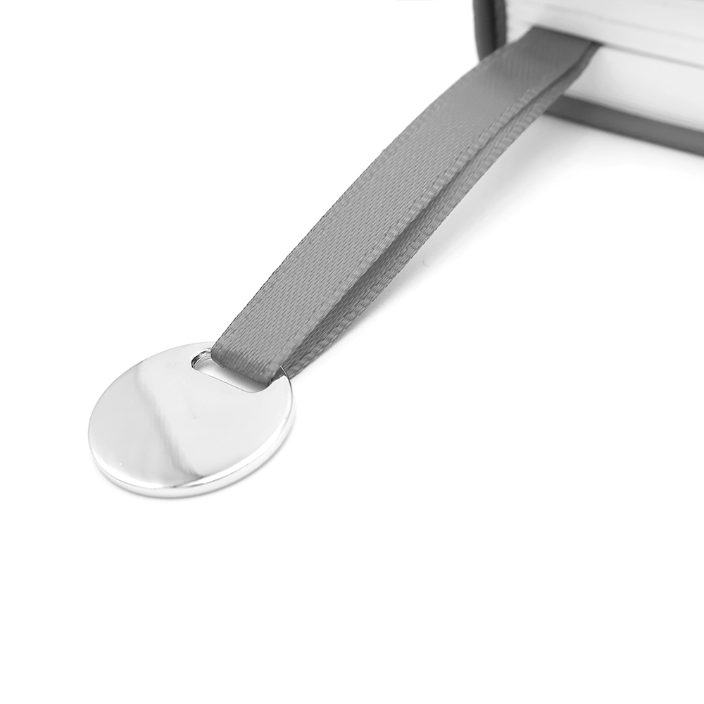 Ляссе и каптал блокнота соответствует цвету обложки. На конце ляссе присутствует металлический жетон, куда можно заказать гравировку логотипа организации.