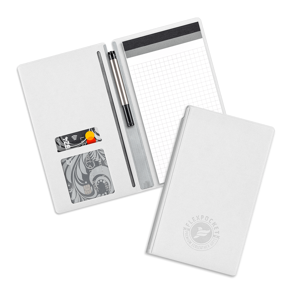 Стильная обложка для блокнота, функциональный и привлекающий глаз аксессуар. Внутри, кроме блокнота снабженного перфорацией для отрыва, находится дополнительный карман для документов или рекламных материалов, а также отделения для пластиковой карты или визитки. Внешняя часть не только выполняет защитную функцию, но и является поверхностью для размещения Вашего логотипа, фирменного оформления или другого изображения.