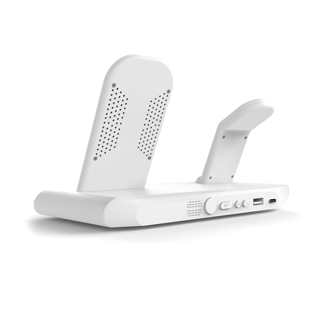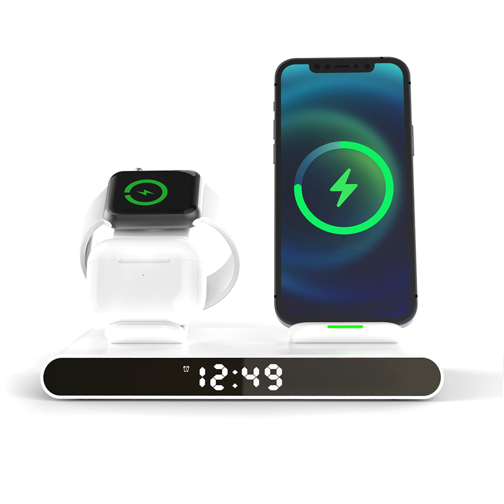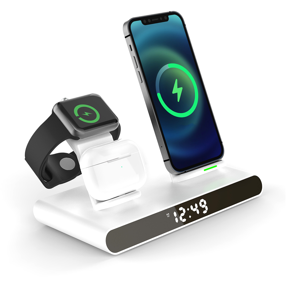Часы электронные Abbatt мультифункциональные с беспроводной зарядкой. Особенность этих электронных часов заключается в том, что они выполянют функцию не только часов и будильника, а еще с их помощью можно заряжать свои гаджеты. Удобство беспроводной зарядки говорит само за себя — очень комфортно заряжать смартфон, часы и наушники, просто положив их на зарядную станцию, не подключая при этом к ним никаких кабелей. Также есть возможность быстрой зарядки Qi. При беспроводной зарядке устройство меньше подвержено перепадам в сети, чем при подключении к розетке, тем самым увеличивается срок службы аккумулятора. Благодаря интерфейсу Type-C (шнур идёт в комплекте 1м) ваши гаджеты будут заряжаться более эффективно, а главное — одновременно. Вы можете смотреть фильмы, слушать музыку, звонить или отправлять сообщения во время всего процесса зарядки. Входы: 9V/2A 12/2A. Выходы: Беспроводной 10W / 7.5W / 5W / USB 5V / 0.8-1A / Airpod 3W / Apple watch 2.5W. Совместимость с Apple 8 и выше.