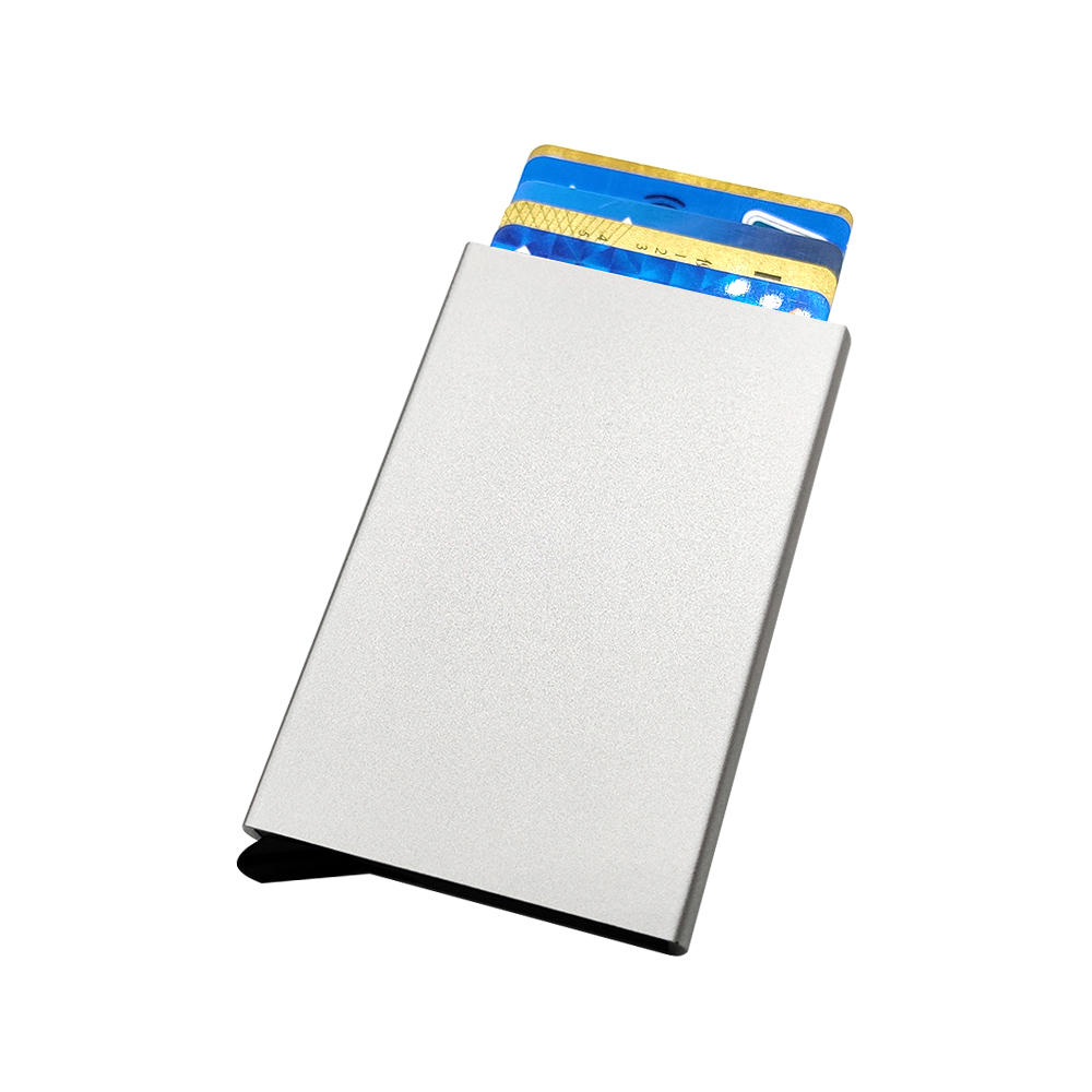 Современный практичный способ хранить и использовать банковские карты – металлический держатель Visir. Кнопка снизу позволяет легко извлекать карты из бокса с защитным покрытием против копирования данных.