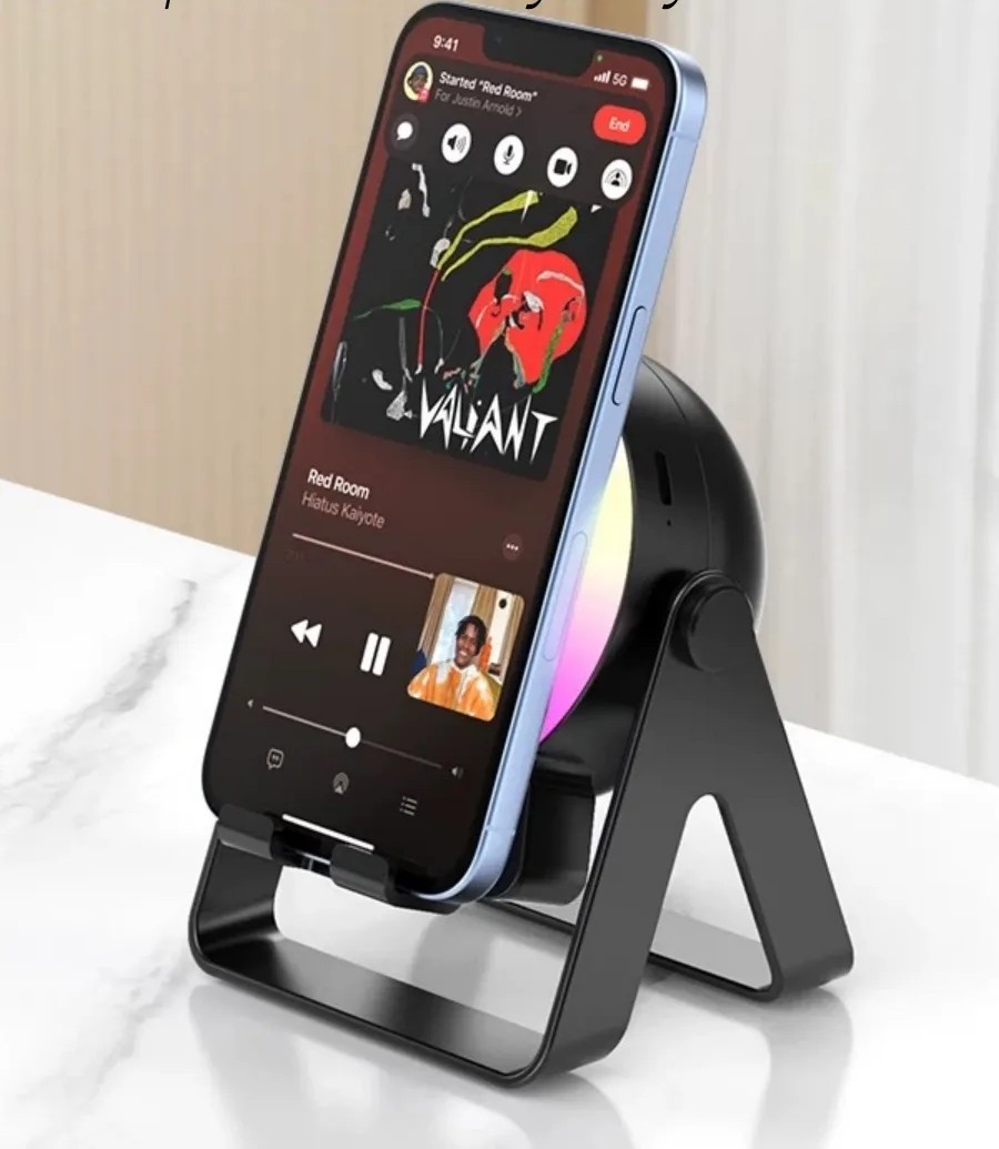 Складная портативная подставка для телефона, оснащенная Bluetooth-динамиком имеет водонепроницаемость IPX7, что делает его устойчивым к дождю, брызгам и брызгам. Регулируемый динамик на подставке для телефона можно расположить вертикально для более удобного угла обзора. Этот держатель для телефона имеет утяжеленное основание, а его нескользящие резиновые подушечки предотвращают скольжение вашего устройства.