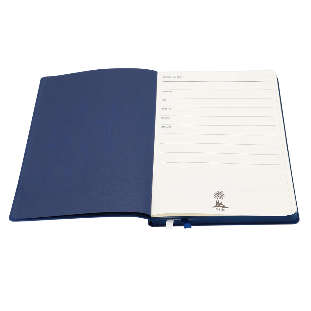Высококачественный ежедневник Gabby в мягкой и приятной на ощупь обложке. Идеален для подарка! Удобный и стильный: закругленные углы, прокрашен в цвет ежедневника край, форзац и нахзац, а также одна из двух лент-закладок, вторая белая. Титульные листы — индивидуальные. Бумага в блоке — цвета слоновая кость. В начале ежедневника страничка с личными данными. Индивидуальная упаковка в термоусадочную пленку.Только вы, ваши мысли и PALM™.