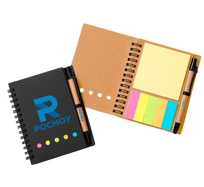 Компактный ежедневник в обложке из крафт-картона с набором цветных стикеров и пластиковой ручкой. Идеален для записей, планирования и заметок в дороге, офисе или учебе. Размер блокнота (13,4×10,5 см) помещается в небольшую сумку.