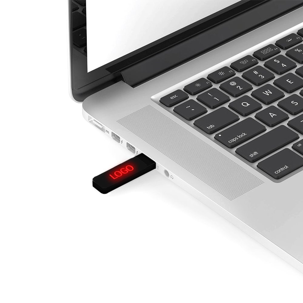 Флешка на 16 Гб, интерфейс 2.0. Красная подсветка логотипа после гравировки.