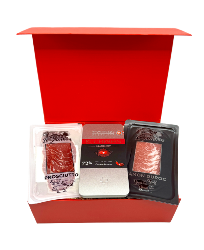 Окорок сыровяленый Хамон Дюрок / Jamon Duroc, т.м. "Le Jambon" нарезка 60 г. Сыр Швейцарский "ЛеСуперб" (0,180 кг) Консервы мясные. Свинина тушеная с хамоном, т.м. «EL PARADOR» 250 гр Томленое мясо Олень в п/у премиум ж/б 325г Зеленые оливки с сыром Фета "NEFELI" ст./бан. (0,290 кг/300 мл) упак. 6 шт. Мягкие вяленые томаты с маслом и травами SOFT 100 гр Традиционный фермерский паштет из кролика 180 гр Le Pere Nagi Палочки Хлебные Гриссини Торинези "Roberto" (0,125 кг) Колбаса сыровяленая полусухая "Салями " «Salumu di Reggiо» (0,200 кг) Нуга медово-ореховая с миндалем 80 гр Vervalli BUCHERON горький шоколад с орехом пекан и карамелью ж/б 100г КОРОБКА ПРЯМОУГОЛЬНАЯ 30,6*23*11 СКЛАДНАЯ НА МАГНИТАХ красная Декор / наполнитель / упаковочные материалы / ленты Сборка набора