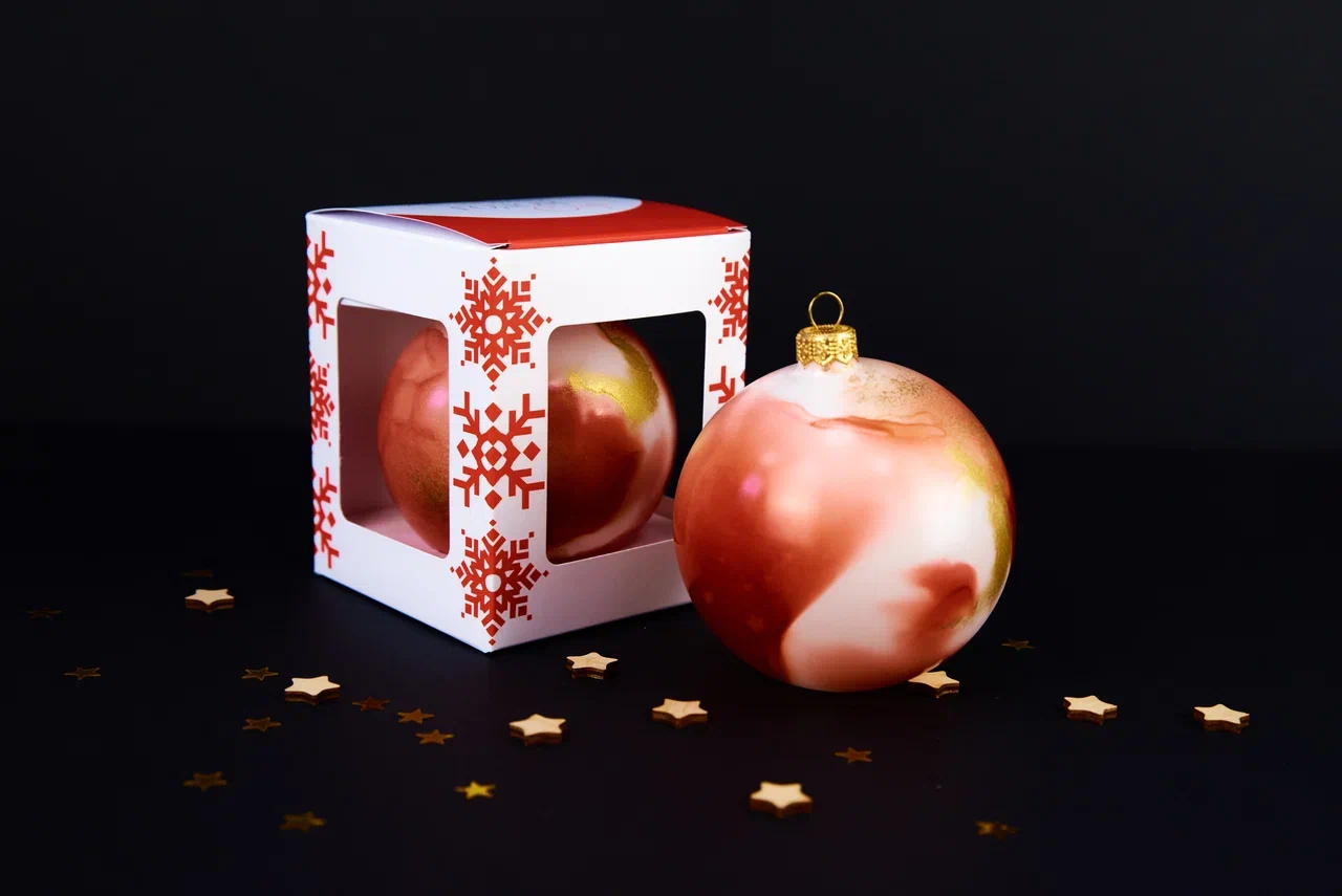 Новогодние шары станут прекрасным дополнением для корпоративного подарочного набора, в который можно включить как несколько разных шаров, так и вино, шоколад и другие элементы.