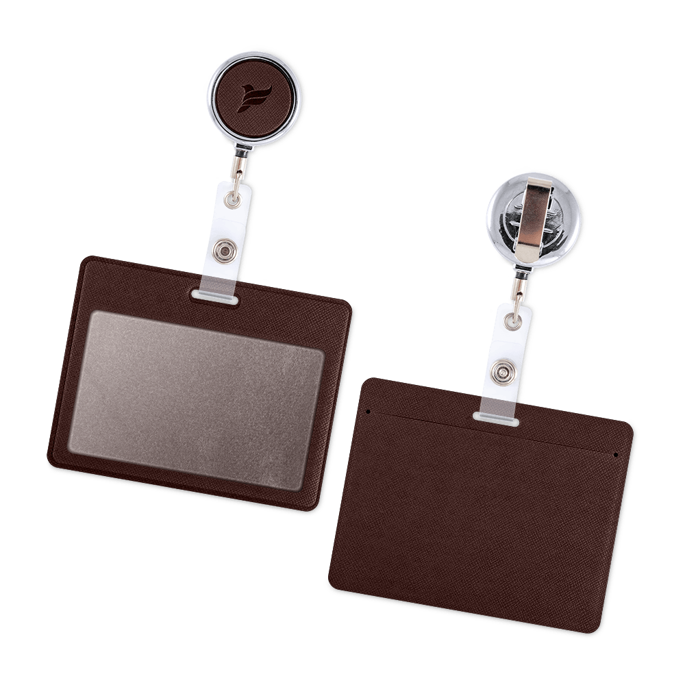 Карман с металлическим ретрактором — горизонтальный, цвет коричневый