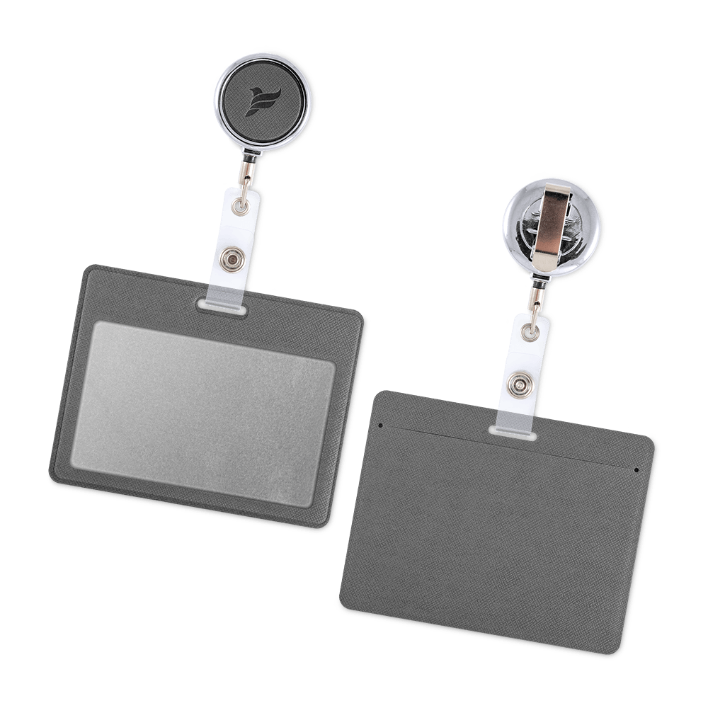 Простой механизм металлического ретрактора зафиксирует чехол для бейджа на одежде или сумке. На ретракторе можно разместить логотип, выполненный блинтовым тиснением — это сделает аксессуар оригинальным.