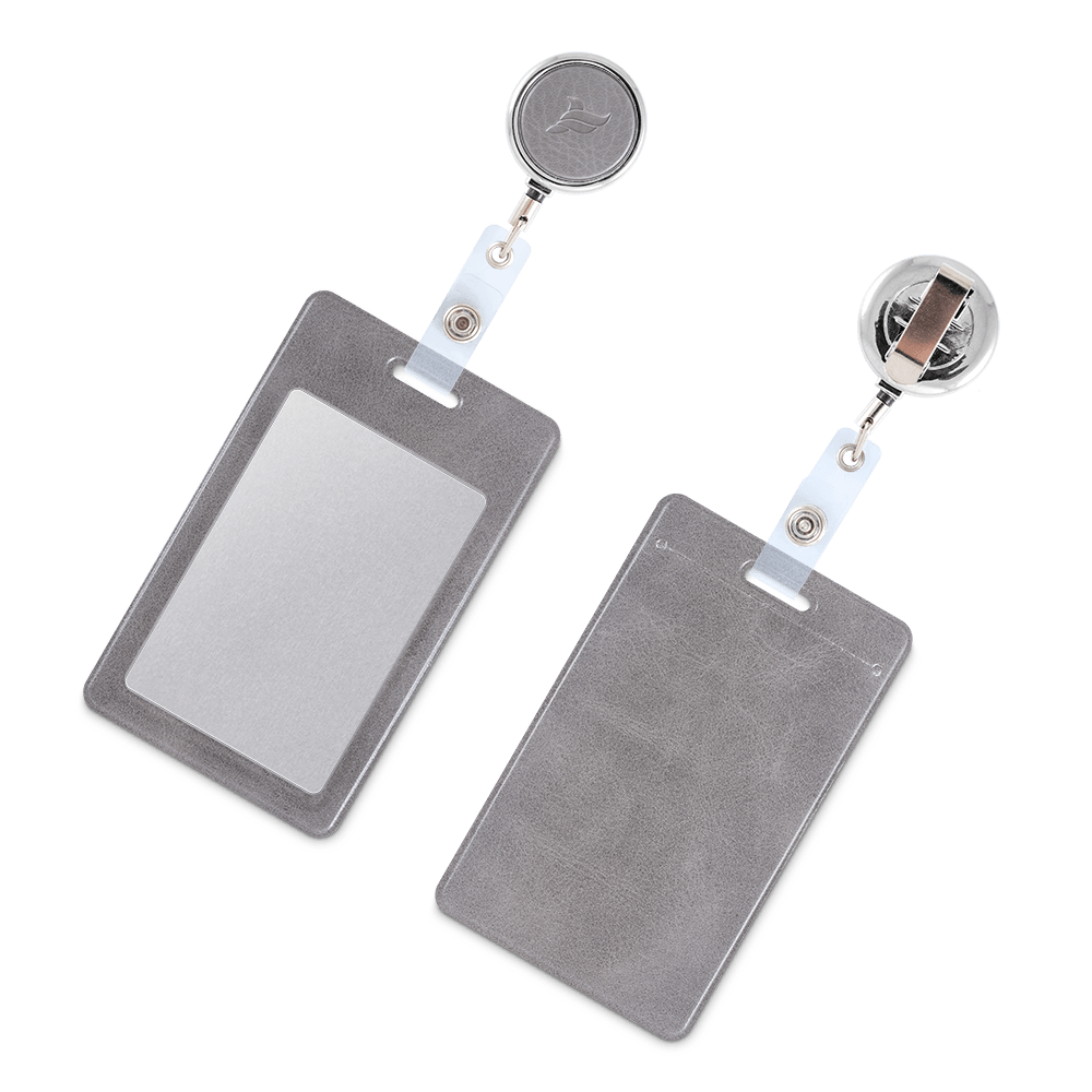 Простой механизм металлического ретрактора зафиксирует чехол для бейджа на одежде или сумке. На ретракторе можно разместить логотип, выполненный блинтовым тиснением — это сделает аксессуар оригинальным.