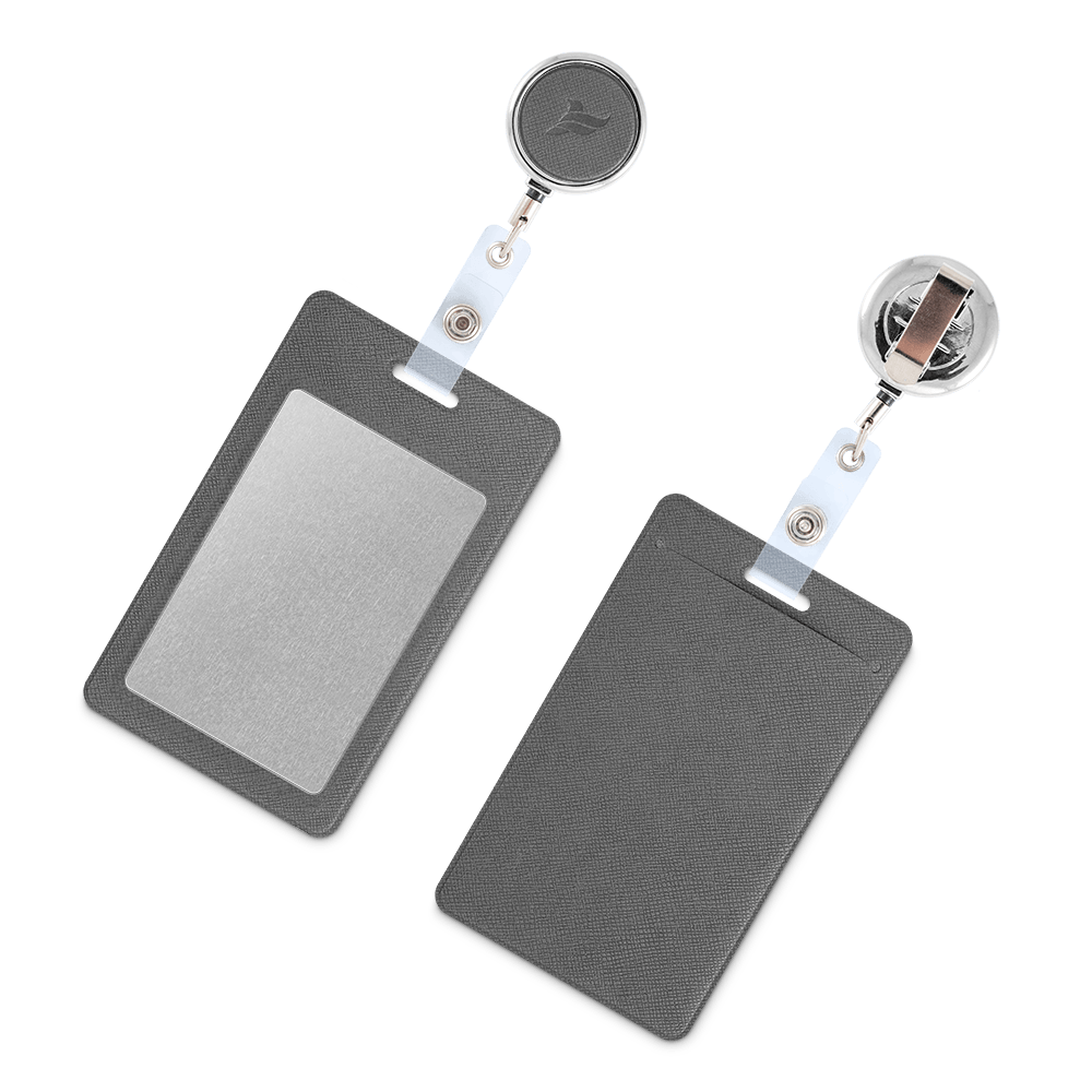 Простой механизм металлического ретрактора зафиксирует чехол для бейджа на одежде или сумке. На ретракторе можно разместить логотип, выполненный блинтовым тиснением — это сделает аксессуар оригинальным.