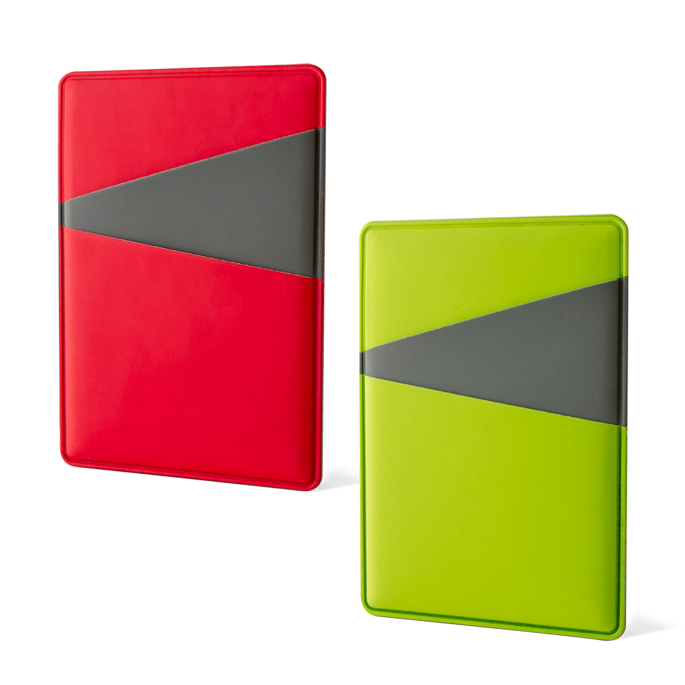 Удобный картхолдер для корпоративных заказчиков, вмещает в себя до трёх пластиковых банковских карт, надёжно защищая их от механических повреждений и удобство в использовании. Футляр выполнен из эко кожи SoftTouch, двух цветов, красно-серый. Возможность нанесения на чехол фирменного логотипа или другого изображения позволяет создавать выгодно выделяет изделие на фоне других футляров для карт