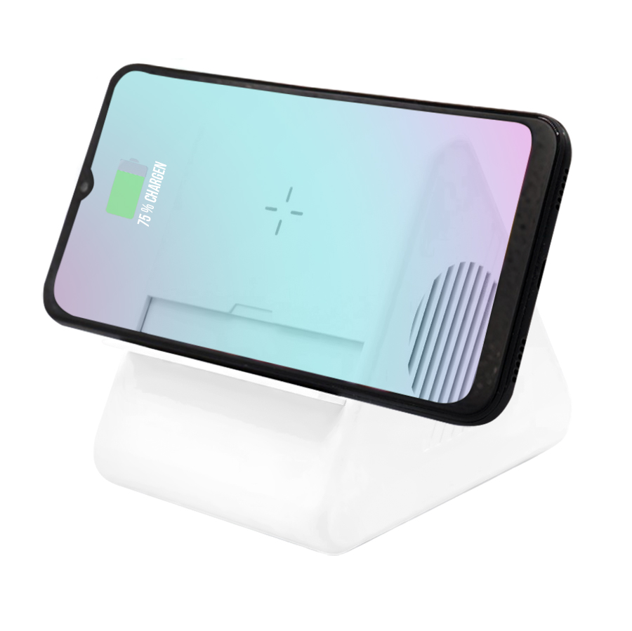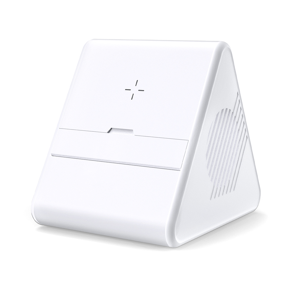 Это стильное устройство в белом цвете станет отличным дополнением к вашему рабочему месту или вечеринке. Колонка не только воспроизводит любимые треки, но и заряжает ваши гаджеты с мощностью беспроводной зарядки 15W!