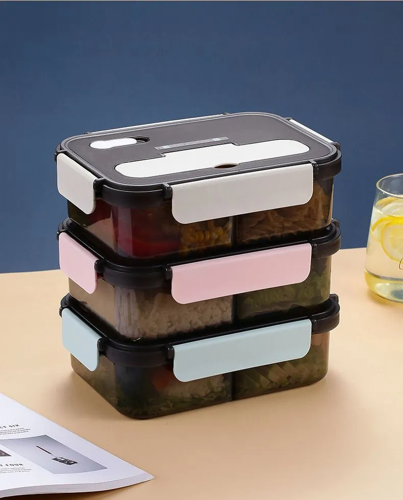 Ланч-бокс герметичный пластиковый в комплекте с ложкой и вилкой