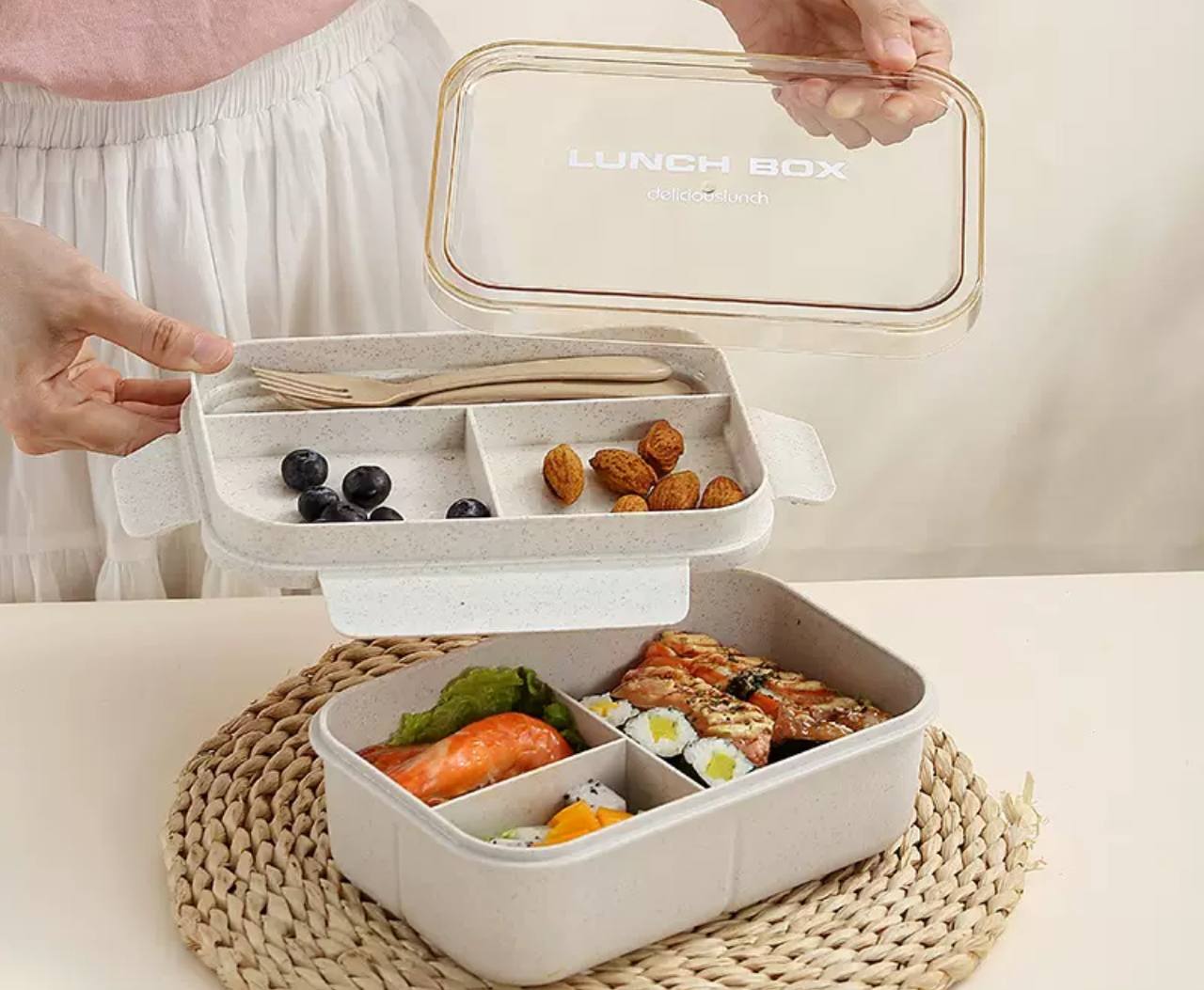 Высококачественный термоконтейнер можно хранить в холодильнике, мыть в посудомоечной машине и нагревать в микроволновой печи. Небольшой многосекционный контейнер для еды многоразового использования также подходит для домашней кухни, а также в качестве подарка на день рождения.