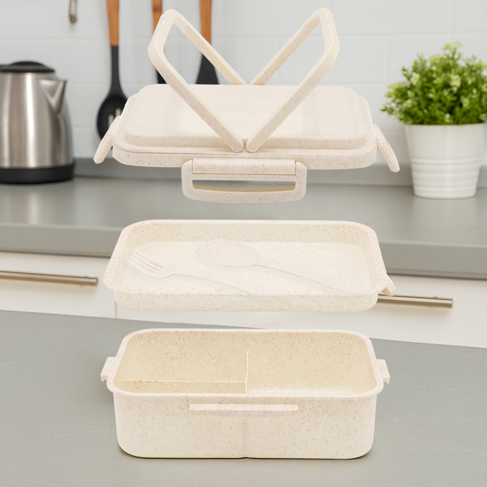 Контейнер для еды Inar — отличный выбор для безопасного и удобного хранения пищи. Его можно брать с собой на работу, в офис, учебу или любые другие места. Удобные отделения под разные блюда и комплект столовых приборов (вилка и ложка) делают его универсальным. Подходит для завтрака, обеда, ужина, поездок, пикников, путешествий. Материалы гипоаллергенные и безопасные. Можно разогревать пищу в микроволновой печи (до 80 градусов). Дополнительные боковые защёлки обеспечивают надежную фиксацию. Такой стильный контейнер станет отличным подарком для близких! Цвет по PANTONE® (максимально приближен): 7604С.