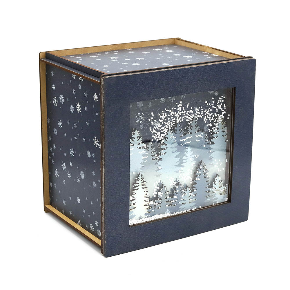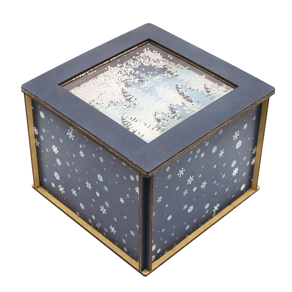 Лес в снегу (квадратная, темная) — упаковка новогодняя из дерева