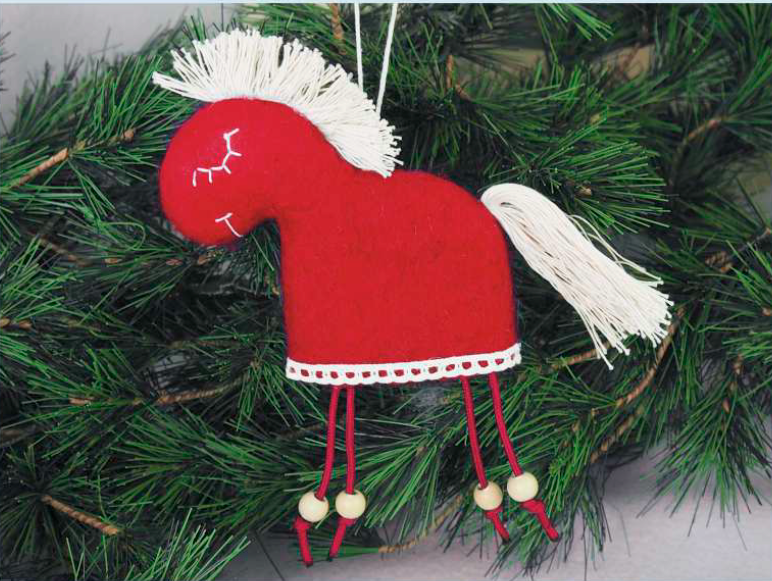 Елочная игрушка из натуральной шерсти, сваляна вручную, грива и хвост выполнены из нити, глаз и улыбка вышиты вручную, ножки выполнены из шнура с бусинами