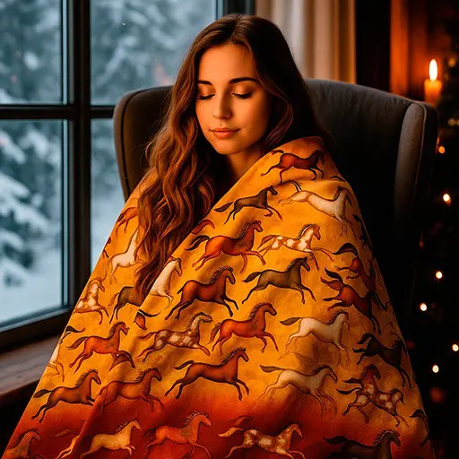 Стильный и уютный плед с оригинальным рисунком под натуральную шкуру лошади — это сочетание тепла, уюта и яркого дизайна. Он прекрасно согреет в холодные зимние вечера и станет эффектным акцентом в интерьере.