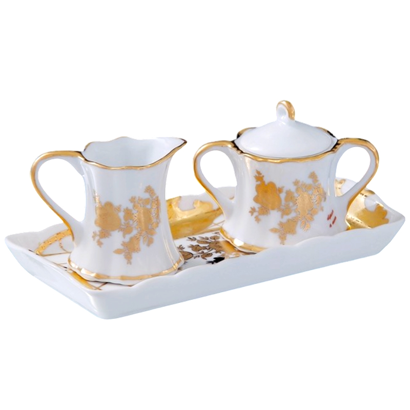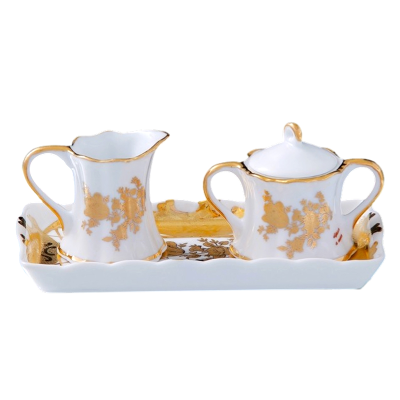 Набор «Мелисса» включает элегантный молочник, сахарницу и блюдце, выполненные из высококачественной керамики или фарфора. Изделия украшены нежным и изысканным дизайном с мотивами мелиссы или растительных орнаментов, что создает атмосферу уюта и гармонии. Молочник идеально подходит для подачи молока или сливок к кофе и чаю, а сахарница — для хранения сахара или сладостей. Блюдце служит удобной подставкой для сахарницы или для сервировки десертов. Этот набор станет прекрасным дополнением к сервировке стола .