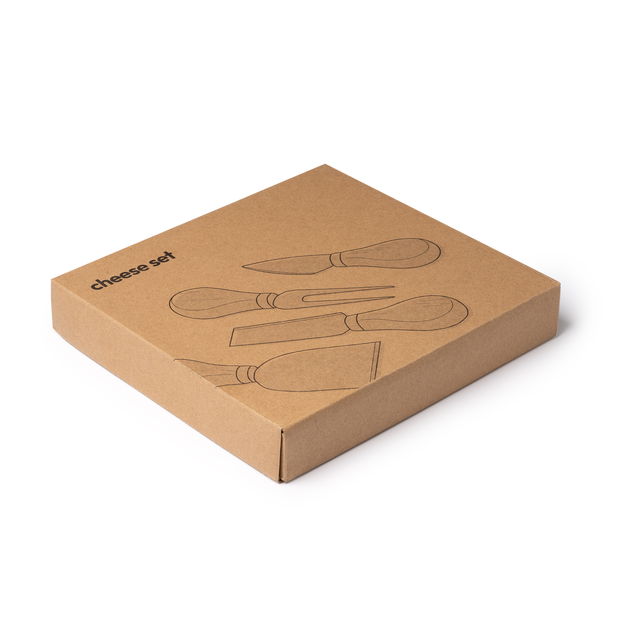 Набор для сыра с 4 приборами из нержавеющей стали с деревянной ручкой. Представлен в крафтовой упаковке.