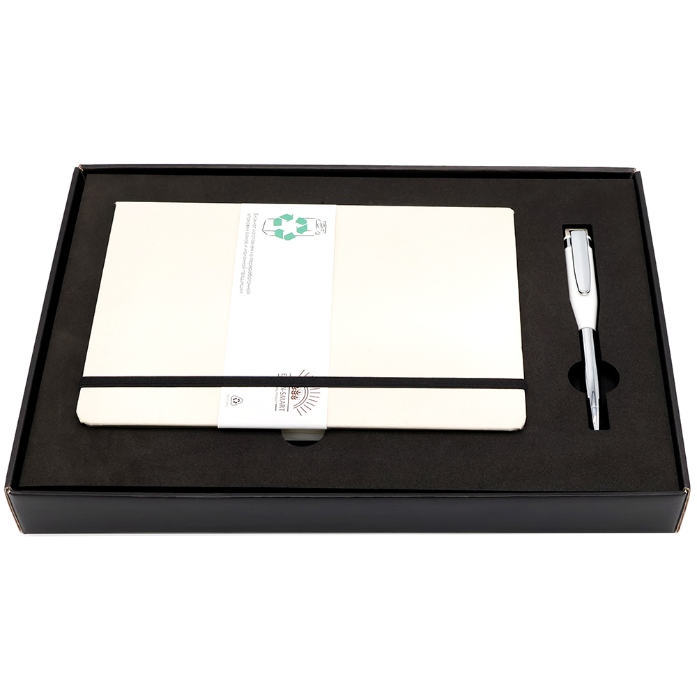 «Fantazy stream» — Подарочный набор в элегантной цветной коробке черного цвета с конструкцией крышка-дно. Внутри расположен ложемент, специально разработанный для надежного и аккуратного размещения всех элементов набора. В набор входят стильный ежедневник с плотной обложкой (арт.51013.02) и металлическая ручка с флэшкой на 64GB (арт1043.01), идеально дополняющая комплект. Ежедневник имеет высококачественную обложку и удобный формат для записи важных дел и заметок, а ручка c флешкjq сочетает в себе элегантный дизайн и практичную функцию хранения цифровой информации. Такой комплект станет идеальным подарком для деловых людей, ценящих сочетание классики и современных технологий.
