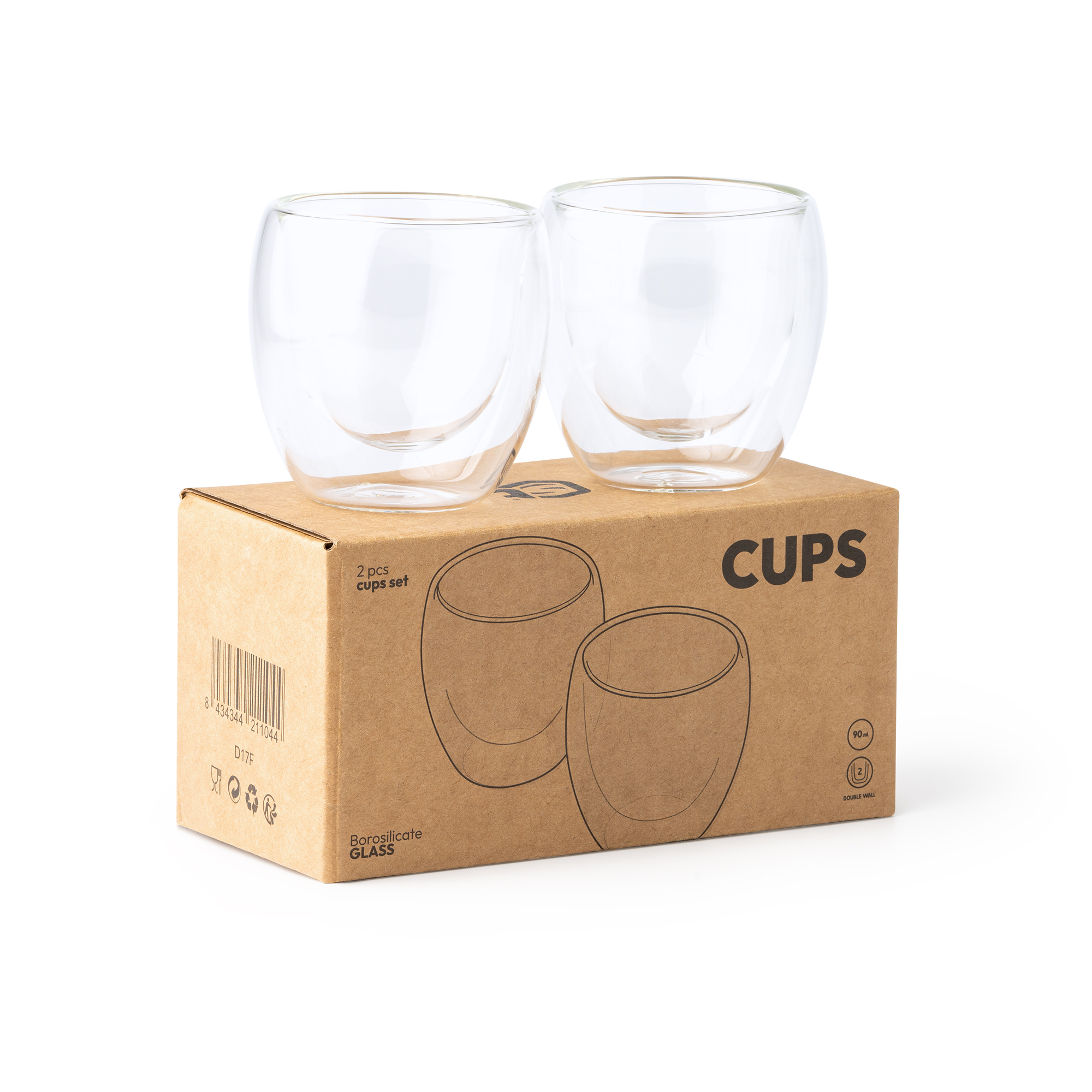 Набор из 2 стаканов с двойными стенками из боросиликатного стекла. Емкость 90 мл.