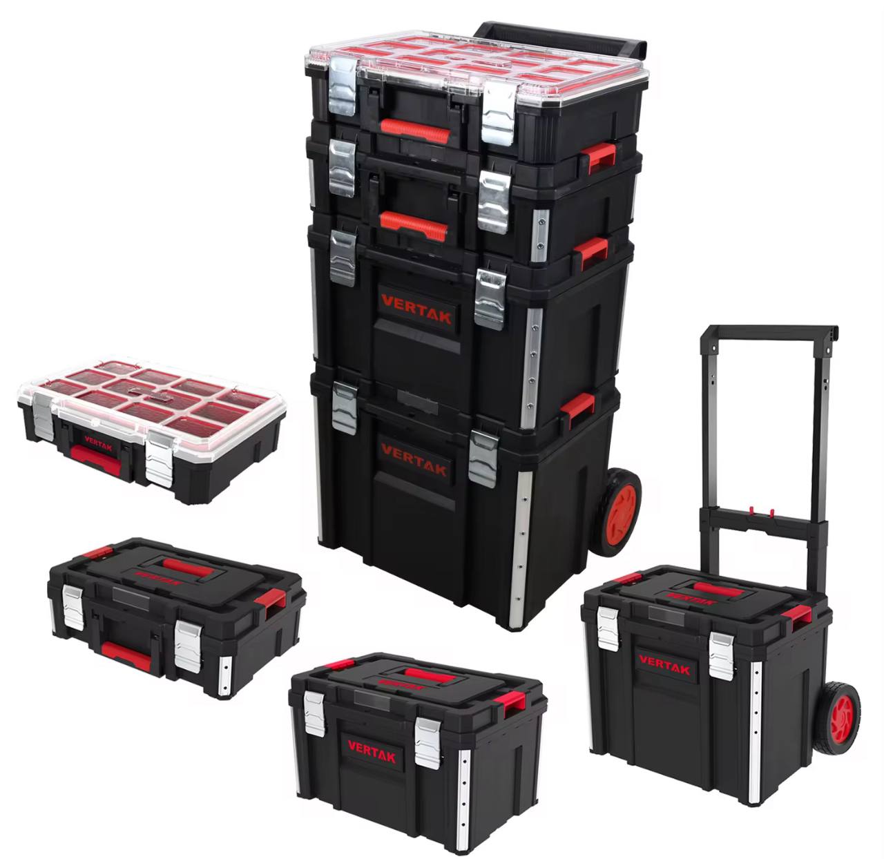 Этот набор создан для того, чтобы максимально упростить вашу работу и сделать процесс хранения инструментов максимально эффективным. Он включает в себя четыре ящика разного размера, которые идеально дополняют друг друга, позволяя вам сортировать и хранить инструменты по категориям, обеспечивая легкий доступ к каждому предмету.