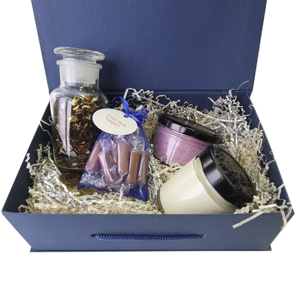 Будьте первым, кто оставил отзыв на “Набор подарочный: Аромасвеча в банке, медовый мусс, чай и ириски”