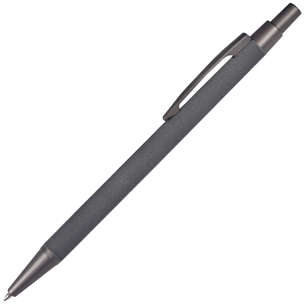 2. Ручка шариковая, механическая. Механизм- нажимной. Покрытие — матовое, бархатное. Размер 14×0,9 см. Цвет — тёмно-серый, приближен к Pantone 432C.