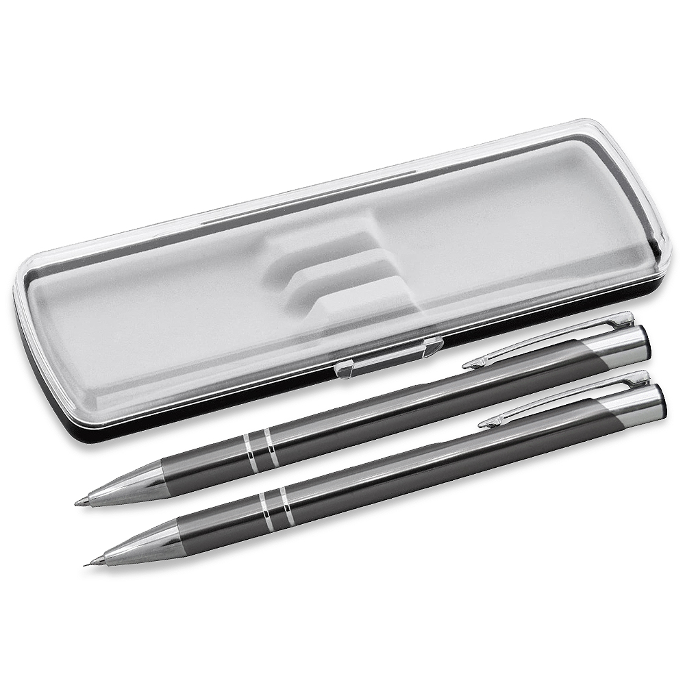 Практичный и стильный вариант бизнес подарка.Ручки можно дарить в разных ситуациях. Поводом может стать окончание учебы, продвижение по службе или карьерной лестнице, день рождения, годовщина или любой другой случай.Выбор ручки – это лишь половина дела. Важно преподнести ее так, чтобы подчеркнуть важность момента и ценность подарка. Ваш главный помощник в этом – красивая упаковка. В набор входят: — Карандаш механический Legend 0.5 мм, металл, серый — Ручка шариковая Legend Requis, металлическая, серая — Футляр для двух ручек Pencase Smart Duo из пластика, прозрачный/черный