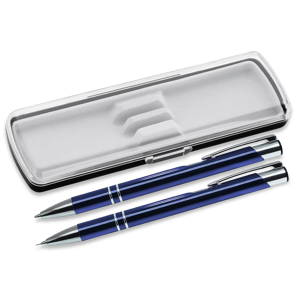 Практичный и стильный вариант бизнес подарка.Ручки можно дарить в разных ситуациях. Поводом может стать окончание учебы, продвижение по службе или карьерной лестнице, день рождения, годовщина или любой другой случай.Выбор ручки – это лишь половина дела. Важно преподнести ее так, чтобы подчеркнуть важность момента и ценность подарка. Ваш главный помощник в этом – красивая упаковка. В набор входят: — Карандаш механический Legend 0.5 мм, металл, темно-синий — Ручка шариковая Legend Requis, металлическая, темно-синяя — Футляр для двух ручек Pencase Smart Duo из пластика, прозрачный/черный