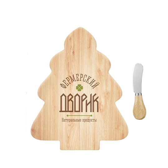 Доска выполнена в оригинальной форме елочки, что придает ей особый шарм и праздничное настроение. Этот набор не только функционален, но и способен стать стильным акцентом в вашем интерьере. Нож для сыра, включенный в набор, разработан