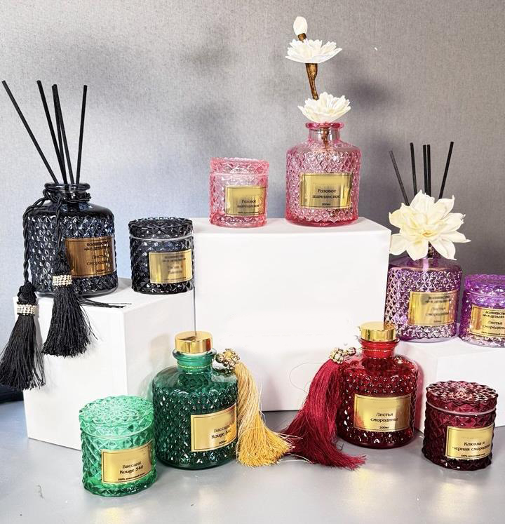 В набор входит: 2 свечи по 60 мл и диффузор объемом 200 мл