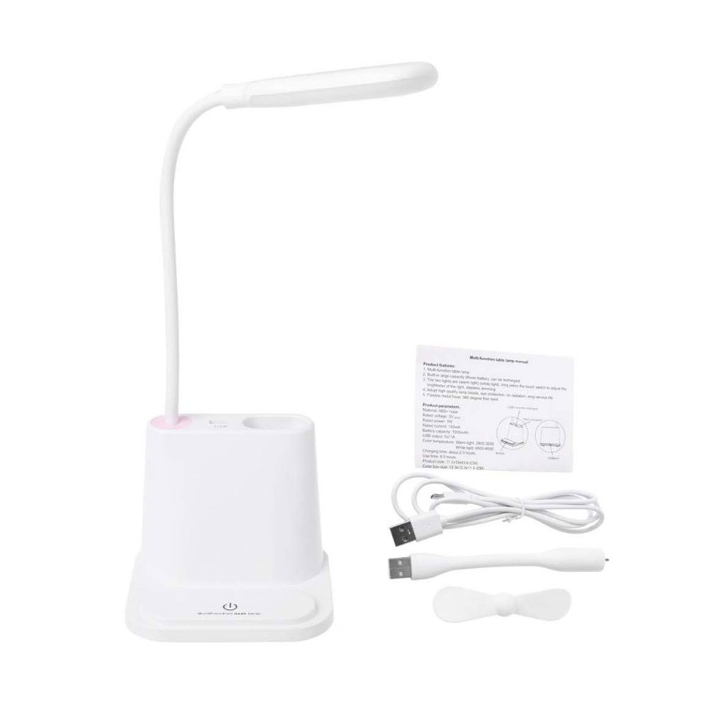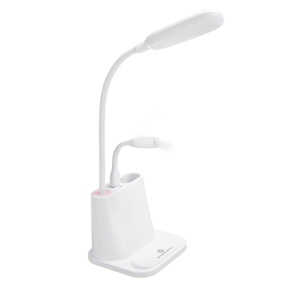 Настольная лампа c вентилятором «Terra Quadro», так же включает в себе органайзер для канцелярии. Два типа освещения – теплый и холодный свет. Напряжение: 5 В. Ток: 1000 мА. Встроенная батарея 2000 mAh (непрерывное время работы лампы 8.5 часа). Комплектация: 1 вентилятор (USB), 1 USB кабель, 1 инструкция.