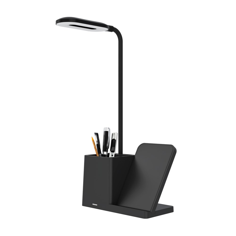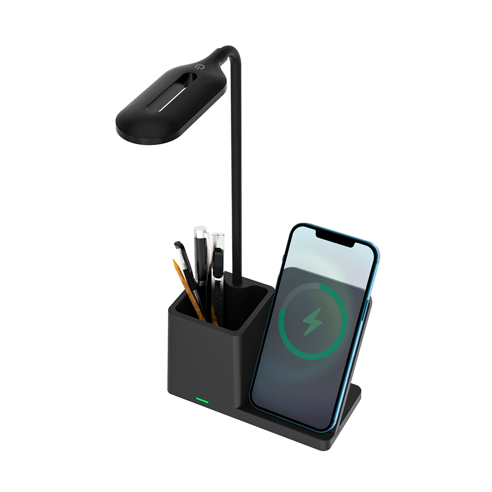 Внешне это минималистичная настольная лампа Stark, а на практике устройство, в котором классический стиль сочетается с современными технологиями. Оснащена беспроводной зарядкой 10W со световым индикатором. Вход: 5V-2A, DC36V (потребляемая мощность 10W). Световой поток ≈ 200 lm. Индексом цветопередачи >80 CRA. В комплекте кабель USB и инструкция. Размер в упаковке: 16*26,3*8,3 см.